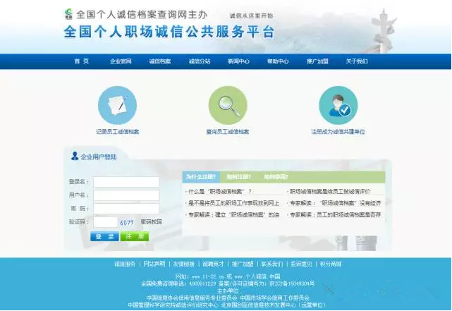 “全国个人职场诚信公共服务平台”也是对由国家发改委主导的39个部委信用信息共享平台的有力补充。该平台将致力于把游离在近2千万家民营、外资等企业中的员工“职场诚信档案”纳入一个平台,建立一种职场上的“一处失信 处处受戒”的职场“激励 约束和长效”机制,让职场的员工“不愿失信、不想失信、不敢失信”。
